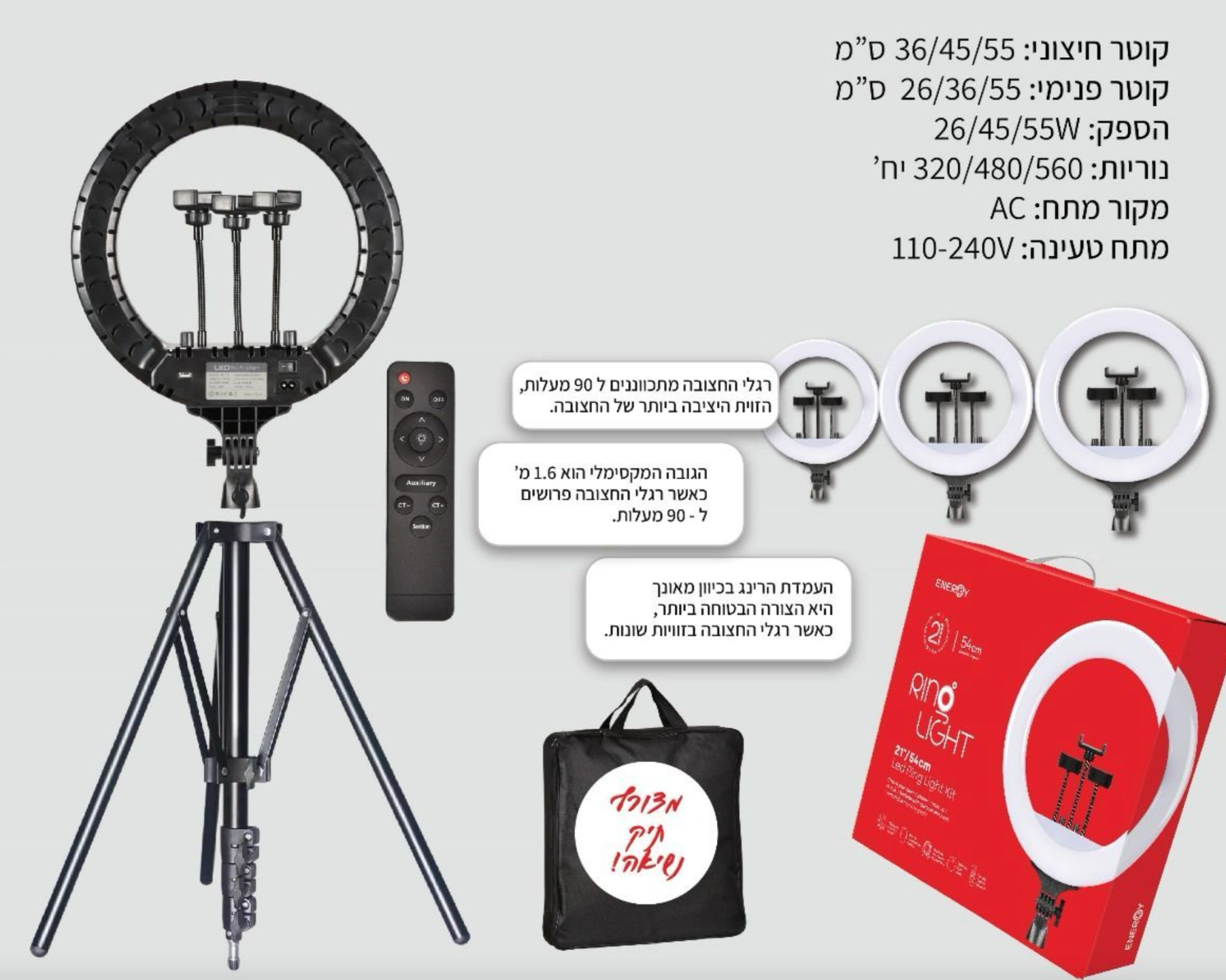 💡 רינג לייט פרימיום 54 ס"מ מבית Energy – התאורה שעושה את כל ההבדל! 📸