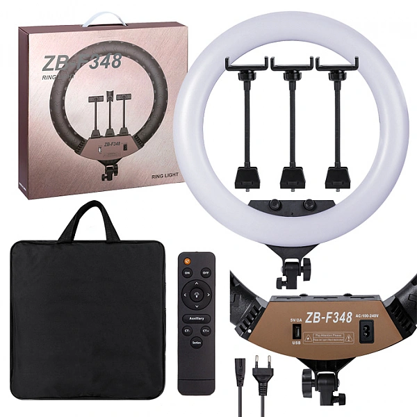 ZB-F348 – רינג לייט 45 ס"מ מקצועי + תיק + חצובה + שלט